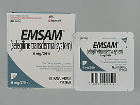 EMSAM is a transdermal patch used to treat major depressive disorder in adults. It contains the active ingredient selegiline, which is a type of monoamine oxidase inhibitor (MAOI).